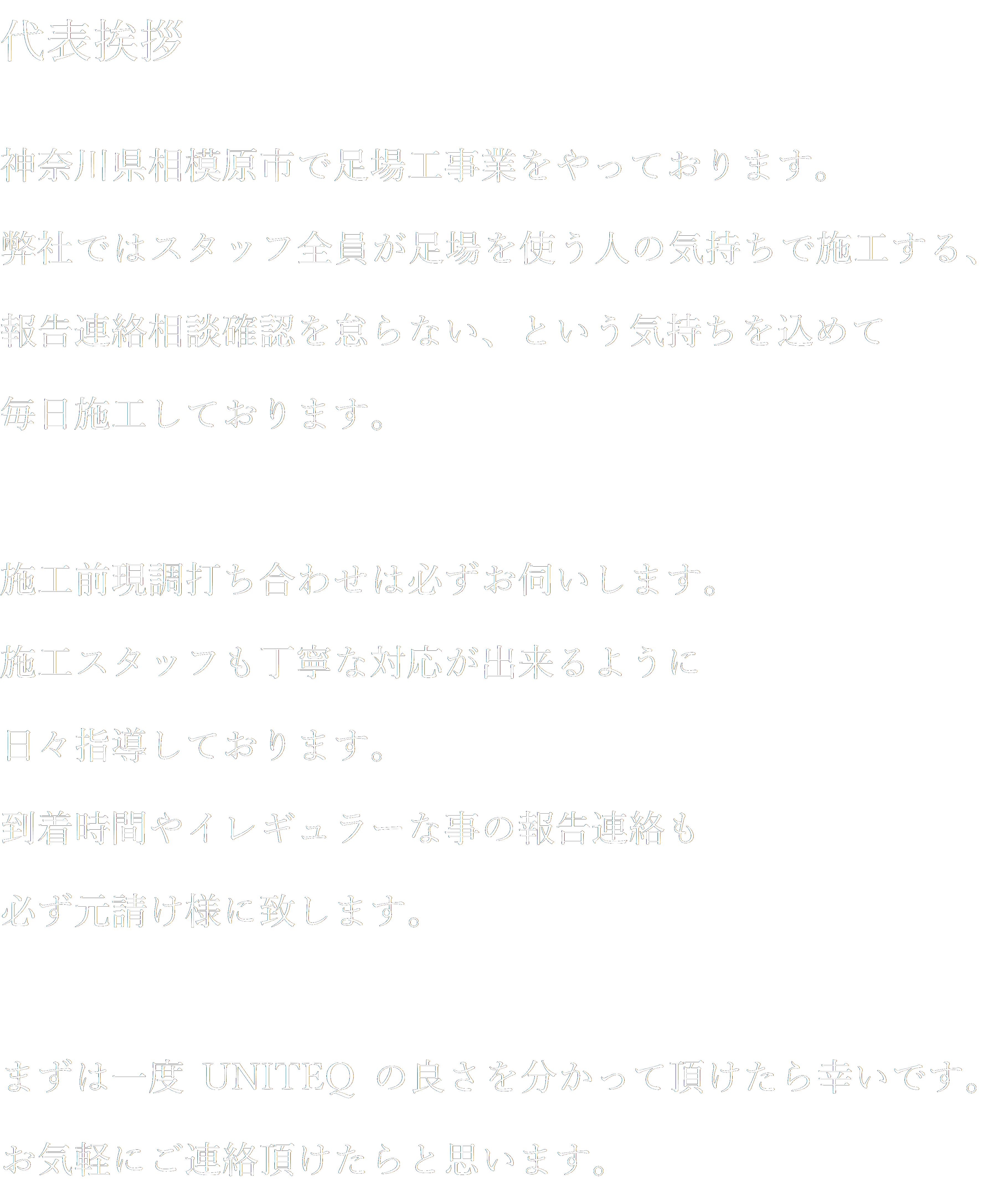 | 事業内容 | 戸建て物件 中規模物件 リフォーム現場の足場施工 |
